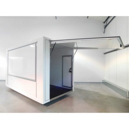 Châssis galva, armature aluminium soudé et peinture blanche, plancher multiplis antidérapant, panneaux et toit isolée 30 mm.