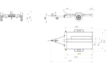 Dimensions de la remorque entière :